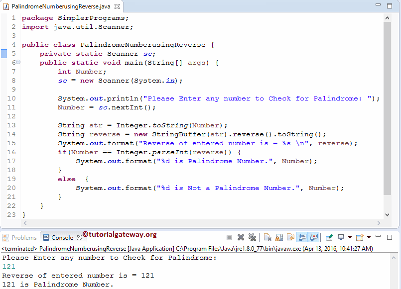 System.out.println(argv[i] + "->" + findPalindrome(l));